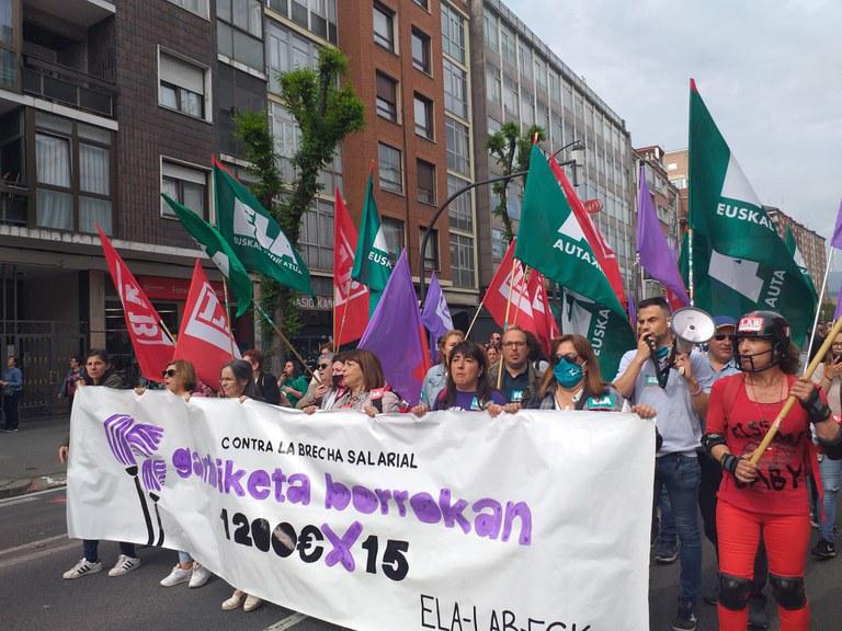 Bizkaiko langileen soldatak ez dira urtean 16.000 eurora iristen, eta gehienek lanaldi partzialak dituzte. Gainera, bi urteko pandemiaren ondoren, soldatek izoztuta jarraitzen dute, nahiz eta KPI inoiz baino altuagoa izan. ELAk, LABek eta ESK-k langileek pairatzen duten soldata arrakala ere salatu dute. Gizonak gehiengoa diren bide garbikuntzarekin alderatuz gero, eraikinetako garbitzaileek % 45 gutxiago irabazten dute. Beraz, 1.200 euro x 15eko soldatak aldarrikatzen dituzte.