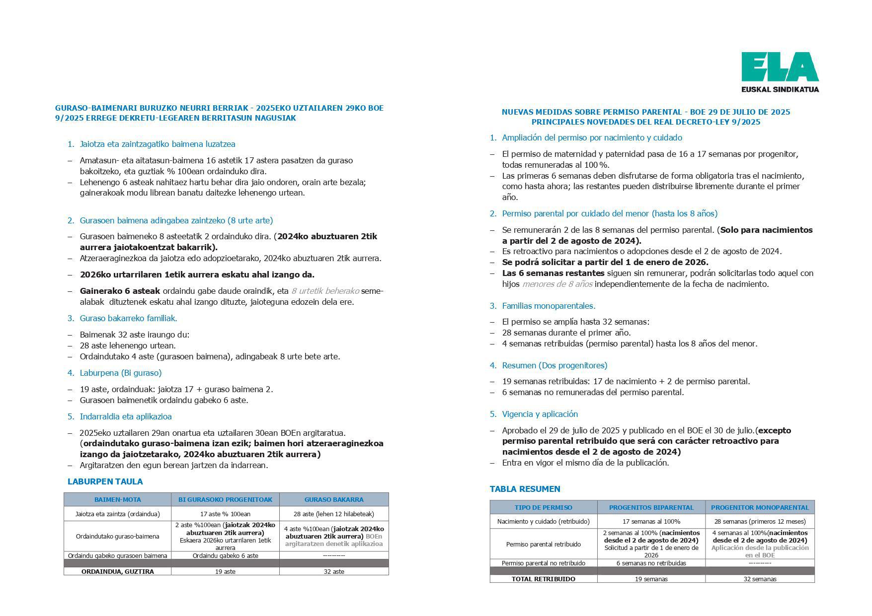 GURASO-BAIMENARI BURUZKO NEURRI BERRIAK -NUEVAS MEDIDAS SOBRE PERMISO PARENTAL