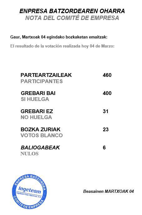 BATZARRAREN EMAITZA - RESULTADO DE LA ASAMBLEA