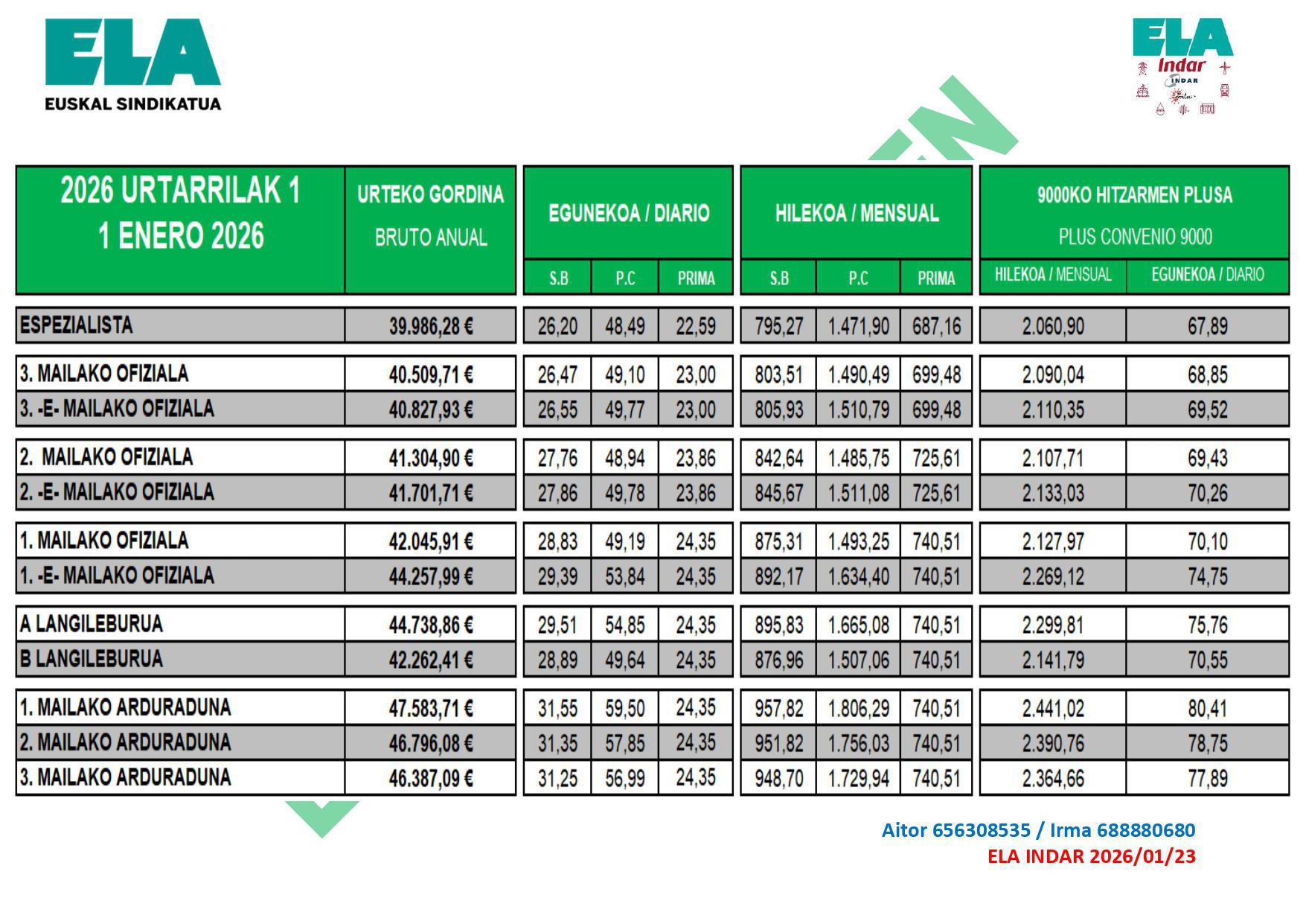TAILERRAKO TAULAK KPIa EGUNERATUTA - TABLAS DEL TALLER CON EL IPC ACTUALIZADO